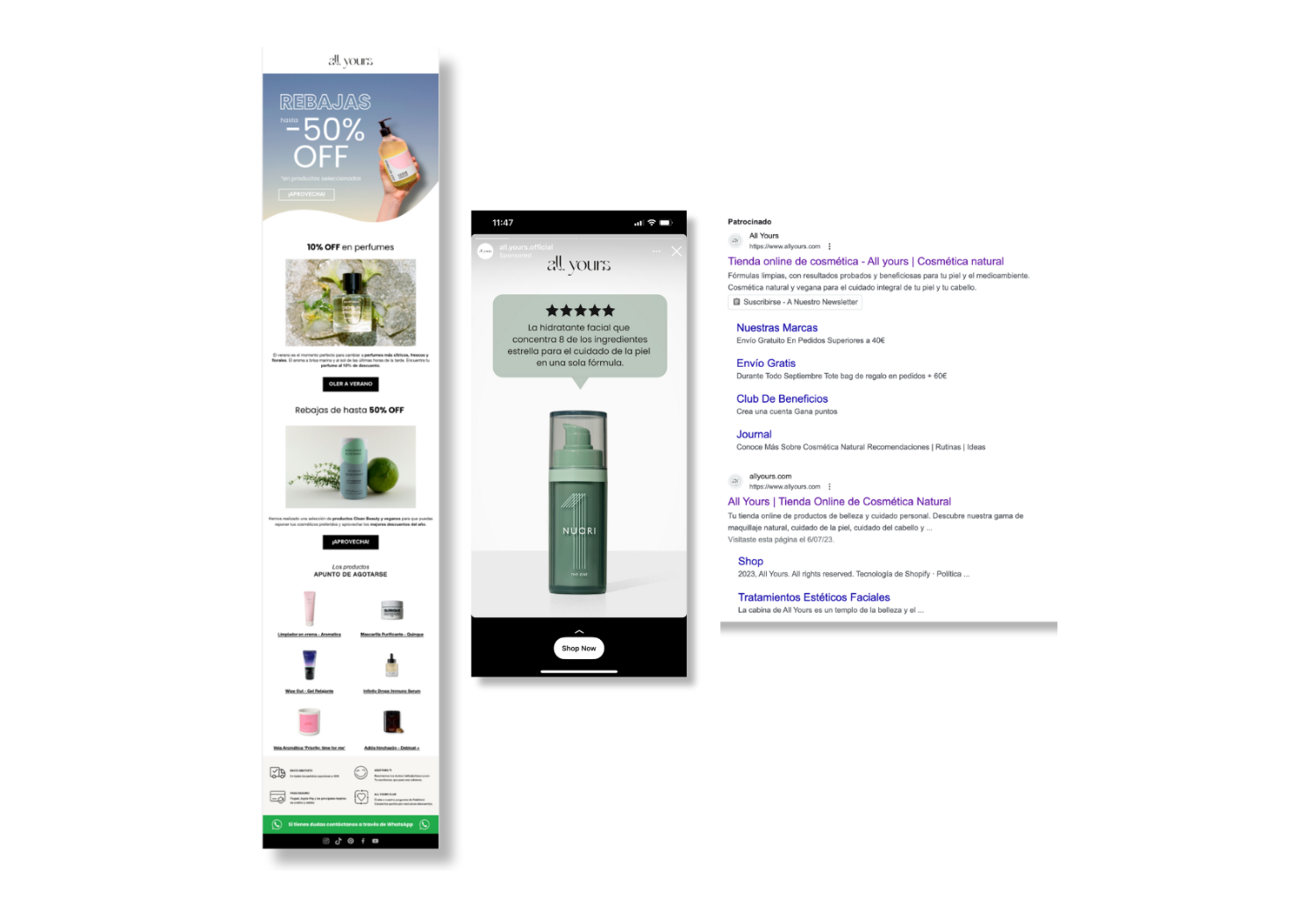 Antes de trabajar con Webmefy, All yours había comenzado a explorar los motores de búsqueda para adquirir nuevos clientes y el uso del correo electrónico en Klaviyo desde enero del 2022, sin embargo, no estaba consiguiendo los resultados deseados para este canal.
