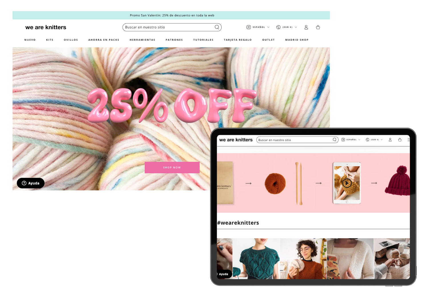 We are knitters comercializa sus productos tanto en tiendas física como online, siendo online su canal más representativo en ventas. La marca tiene presencia en distintos mercados, uno de los más significativos es el mercado de EEUU. Para WAK, proporcionar una experiencia de compra excepcional en su tienda online es crucial para cultivar la lealtad de sus clientes y continuar expandiéndose.